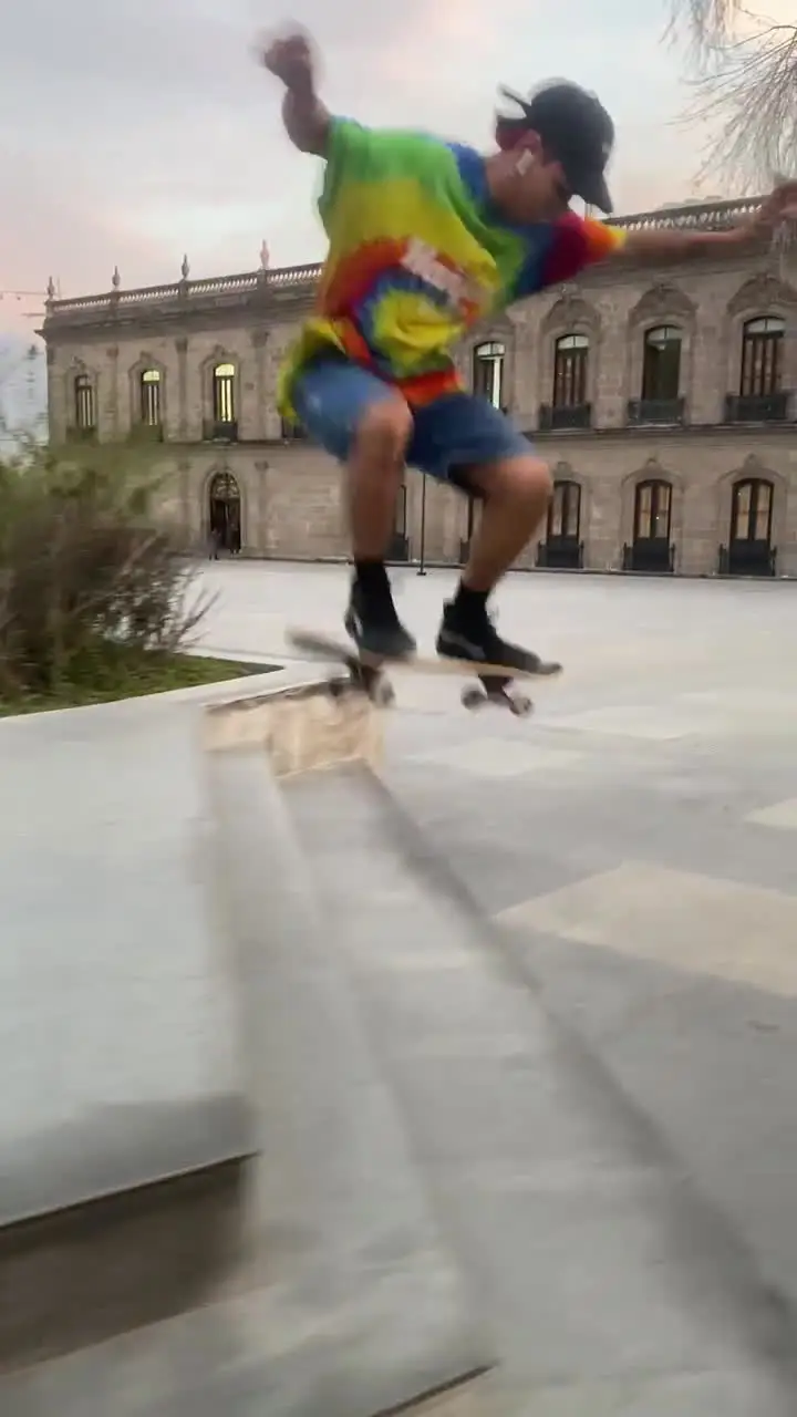 Línea: Frontside 180 a Fakie Ollie, 3 escaleras.Skater: Mario Martínez [México]