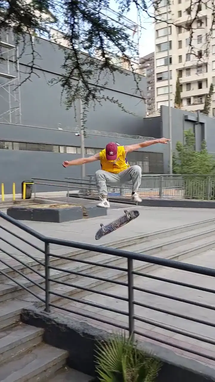 Trick: Switch double flip three stairs, Street spot.Skater: Darío Reyes Millán [Chile]