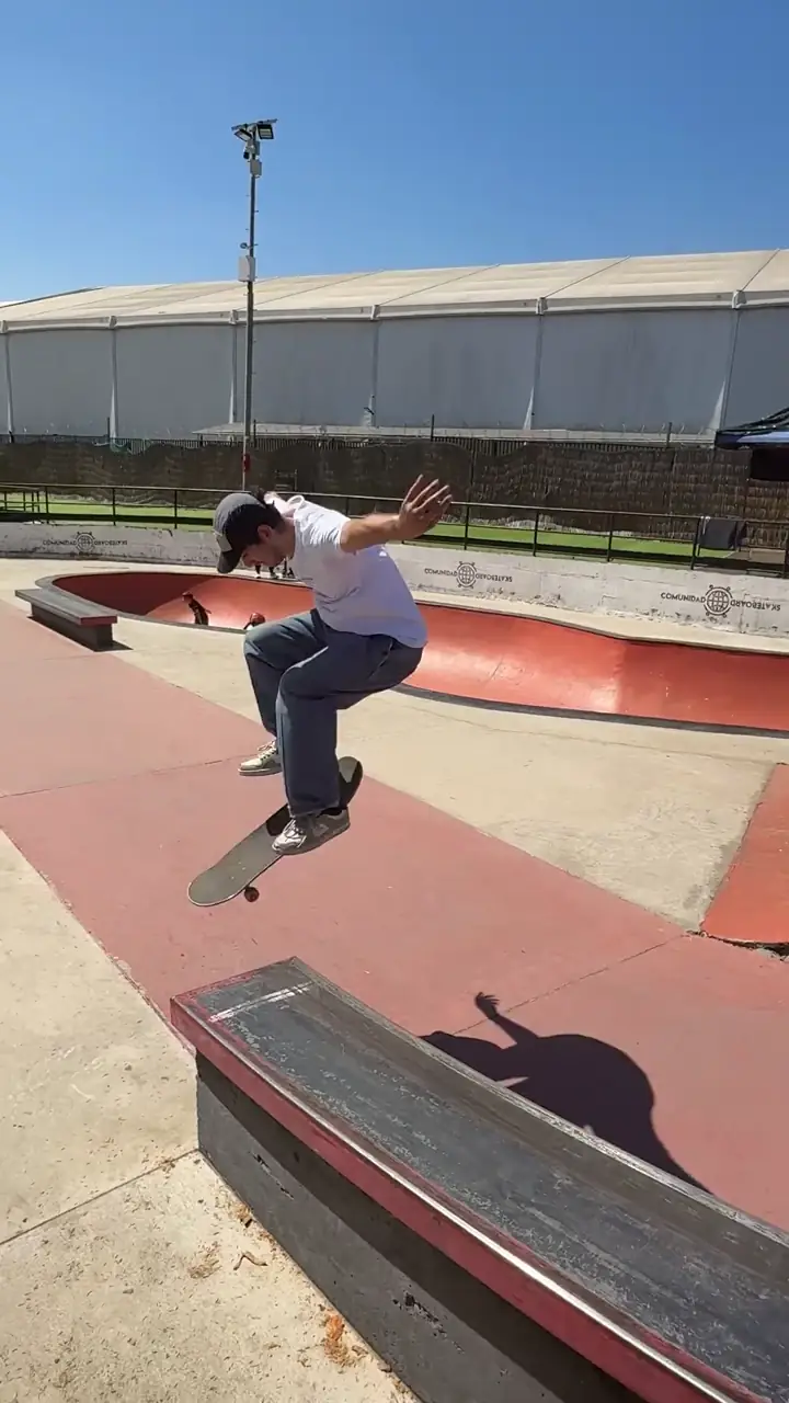 Trick: Fs 5050 to fs shove it out down curve ledge, Skatepark LC2.Skater: Darío Reyes Millán [Chile]