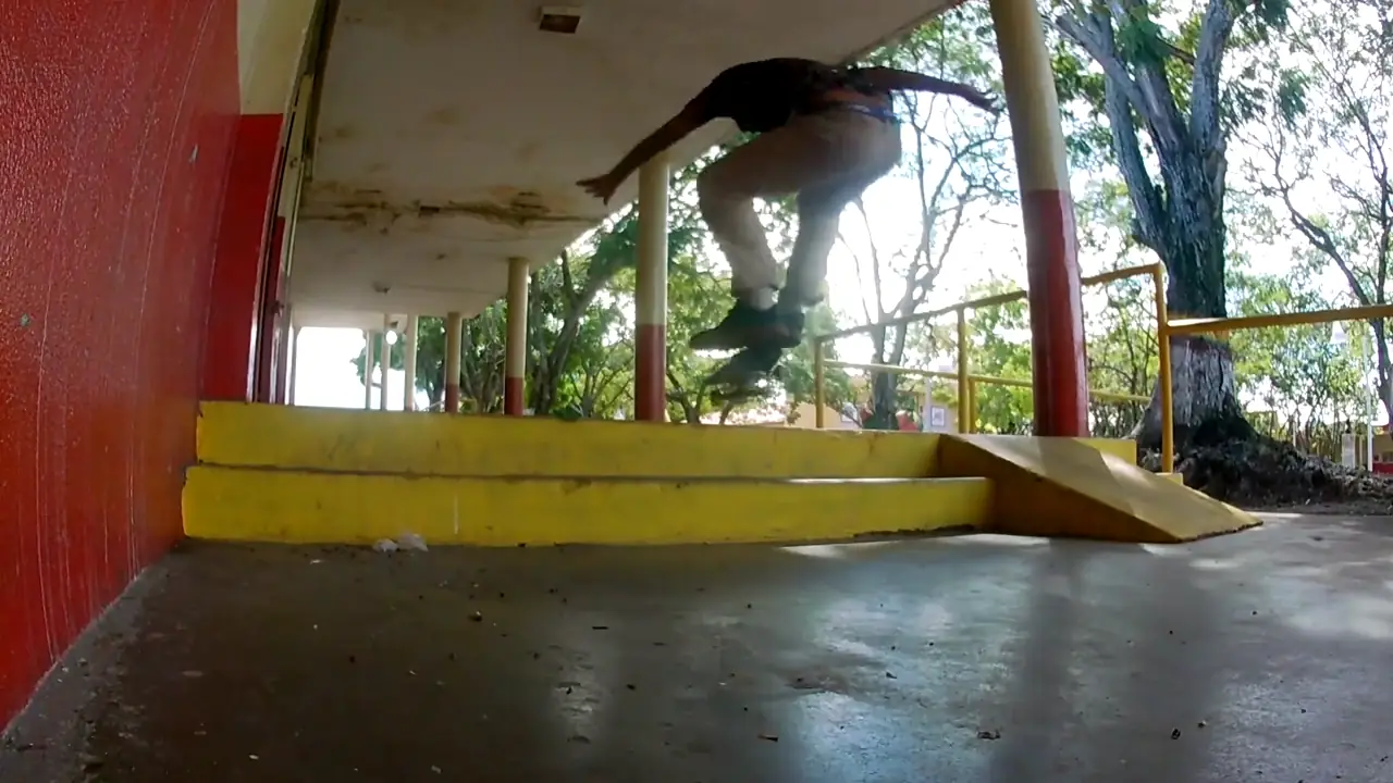 Trick: Half cab up 2 stairs, Centro Cívico, Ciudad Piar.Skater: Alejandro Brito Jimenez [Venezuela]
