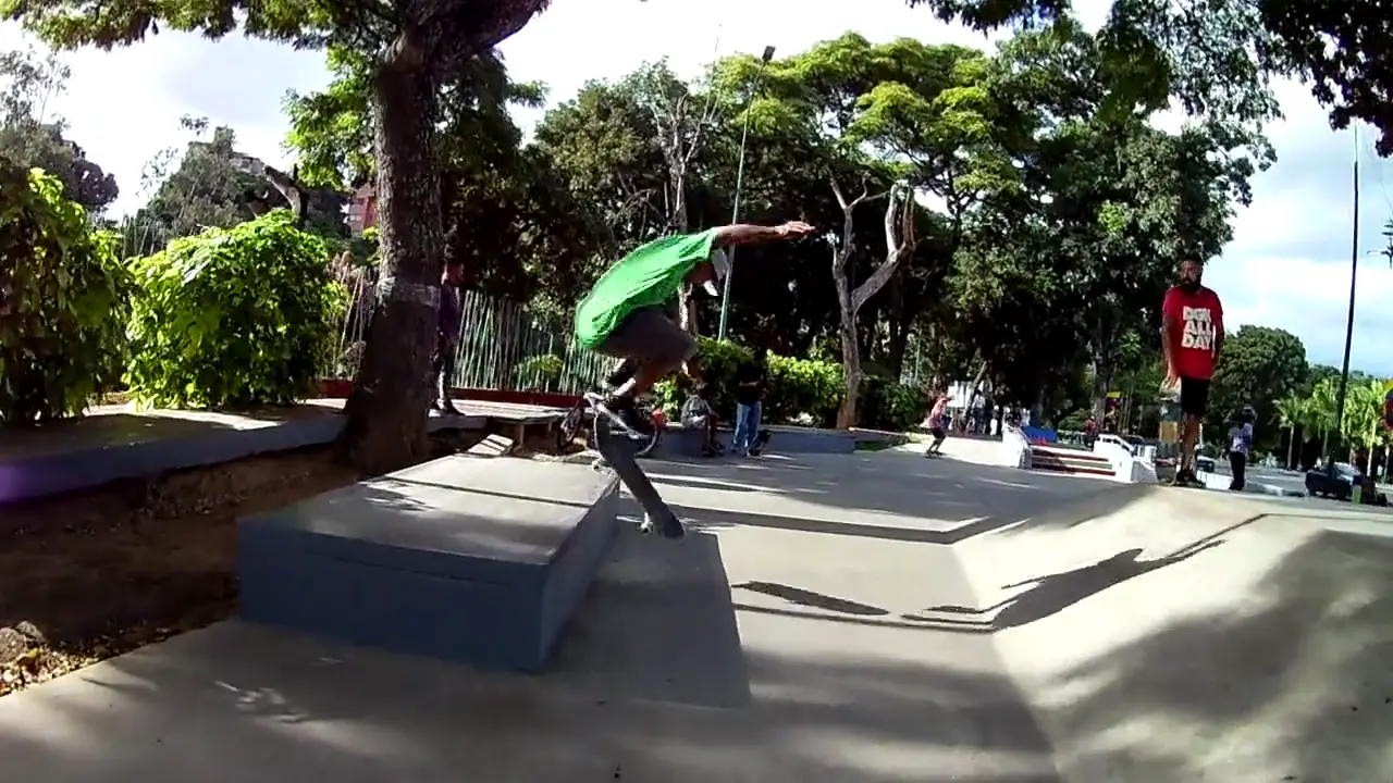 Trick: Frontside pop shuvit backside 50-50, Skatepark los simbolos.Skater: Fernando Vyasadeva Moro Bello [Venezuela]Filmer: Gilberto Farias