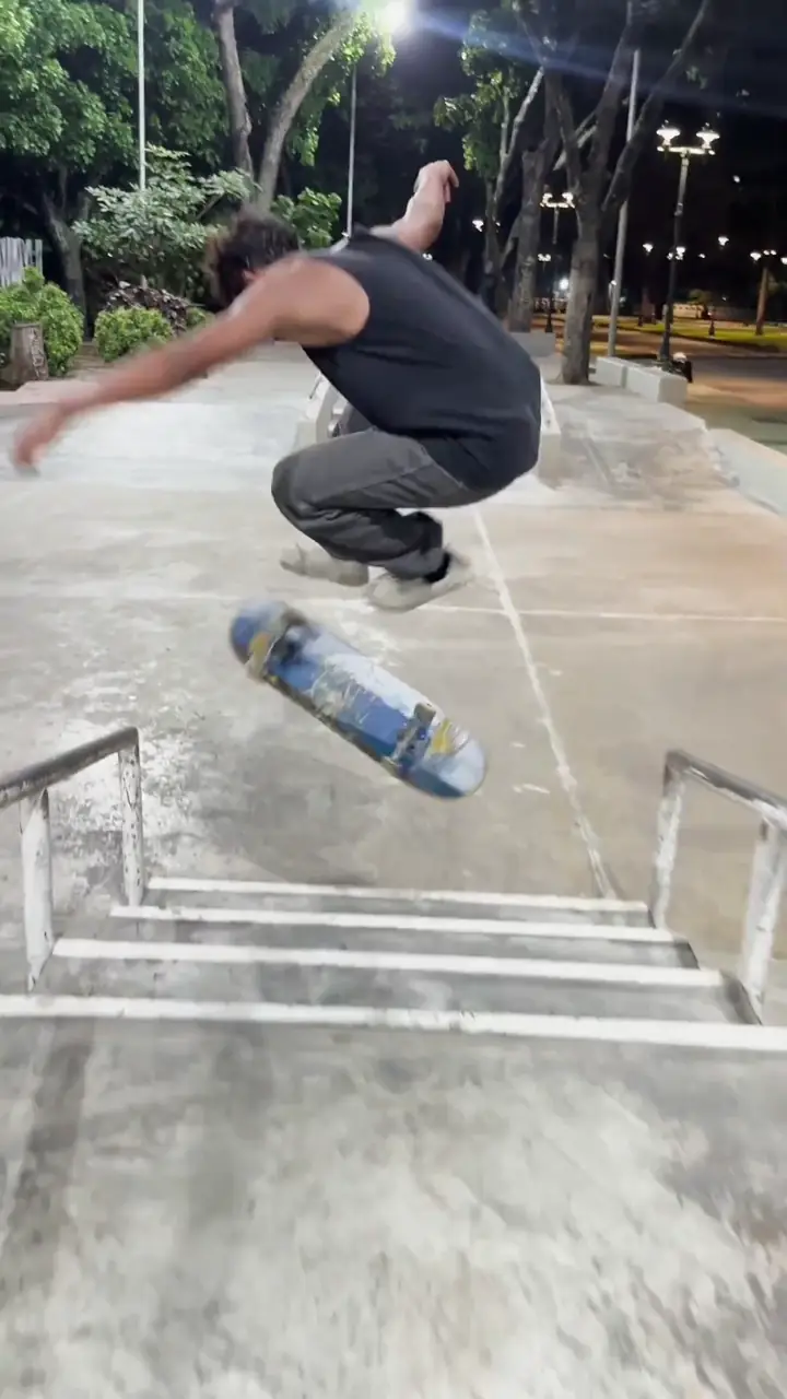 Trick: 360 flip, 5 stairs.Skater: Imberk Silva [Venezuela]Filmer: Whisrrrr